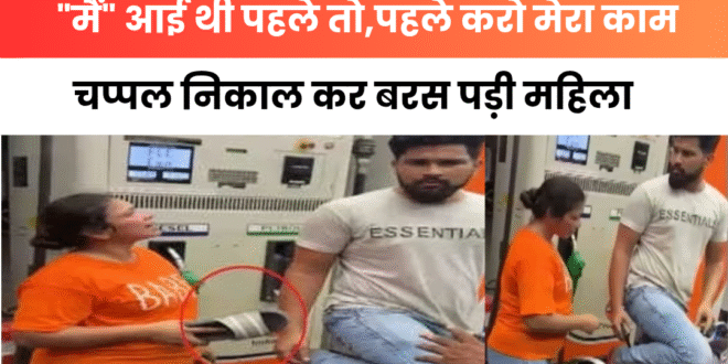 लखनऊ के गोमतीनगर में पत्रकारपुरम इलाके में पेट्रोल पंप पर एक महिला ने जमकर हंगामा किया। वीडियो में महिला हाथ में चप्पल लेकर पहले पेट्रोल भरवाने की जिद में कर्मचारियों से उलझ गई। पेट्रोल भरवाने को लेकर हुए विवाद में महिला ने चप्पल निकालकर युवकों को धमकाया।