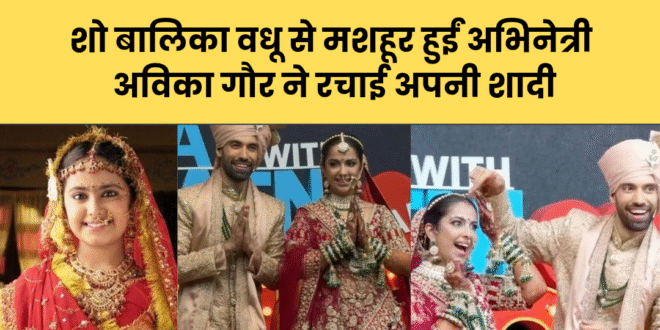 शो बालिका वधू से मशहूर हुईं अभिनेत्री अविका गौर अपने लॉन्गटाइम बॉयफ्रेंड मिलिंद चंदवानी के साथ आज सात फेरे ले चुकी हैं। उनकी शादी ग्रैंड लेवल पर हुई। रेड ब्राइडल लंहगे में बालिका वधू एक्ट्रेस बला सी खूबसूरत लग रही थी। अब दोनों शादीशुदा कपल बन गए हैं। इस शादी की काफी चर्चा रही क्योंकि ये शादी आम शादी नहीं थी।अविका और मिलिंद की शादी नेशनल टीवी पर हुई है। दोनों ने रियलिटी शो ‘पति पत्नी और पंगा’ में शादी की है। दोनों शो का हिस्सा भी हैं। उनकी शादी की सारी रस्में भी शो में ही हुई थीं। उनकी शादी में कई celebrities शामिल हुए । कपल की ग्रैंड वेडिंह में हिना खान, ईशा मालवीय, रुबीना दिलैक, मुनव्वर फारुकी और सोनाली बेंद्रे जैसे स्टार्स ने शिरकत की। वहीं फैंस उनके लुक को देखकर एक्ट्रेस की जमकर तारीफ कर रहे हैं।