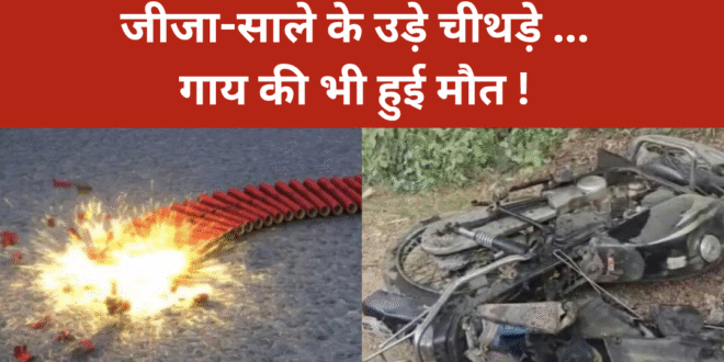 राजधानी लखनऊ में मंगलवार को हादसा हो गया। गोसाईंगंज क्षेत्र में बोरी में पटाखे भरकर बाइक से निकाह में आतिशबाजी करने जा रहे जीजा-साले की बाइक सड़क किनारे खड़ी एक गाय से टकरा गई । टक्कर के झटके से बाइक का संतुलन बिगड़ा और बाइक पर रखे सड़क पर बिखर गए साथ ही युवक सड़क पर गिर पड़े और तभी भीषण विस्फोट हो गया । धमाके की तीव्रता इतनी अधिक थी कि मौके पर ही दोनों युवकों की मौत हो गई। जीजा-साले के चीथड़े उड़ गए और साथ ही गाय की भी मौत हो गई। पुलिस ने परिजनों को घटना की सूचना दी। दोनों के शव पोस्टमार्टम के लिए भेजे गए हैं। हादसे से इलाके में अफरा-तफरी मच गई। लोगों में दहशत का माहौल है।