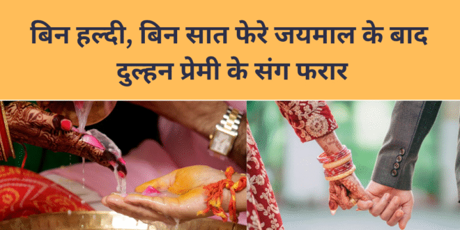 यूपी के उन्नाव में दुल्हन ने दूल्हे को डाली जयमाल,सात फेरे के समय प्रेमी के साथ फरार हो गई। बारात बिना दुल्हन के वापस चली गई। यह घटना इलाके में चर्चा का विषय बनी हुई है।