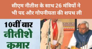 पूनम शुक्ला : मुख्य प्रबंध संपादक : बिहार चुनाव में एनडीए की प्रचंड जीत के बाद अब सूबे में नई सरकार के गठन की बारी है। पटना के गांधी मैदान में भव्य तैयारी की गई है। बिहार में नीतीश कुमार ने 10वीं बार मुख्यमंत्री पद की शपथ ली। पटना के …